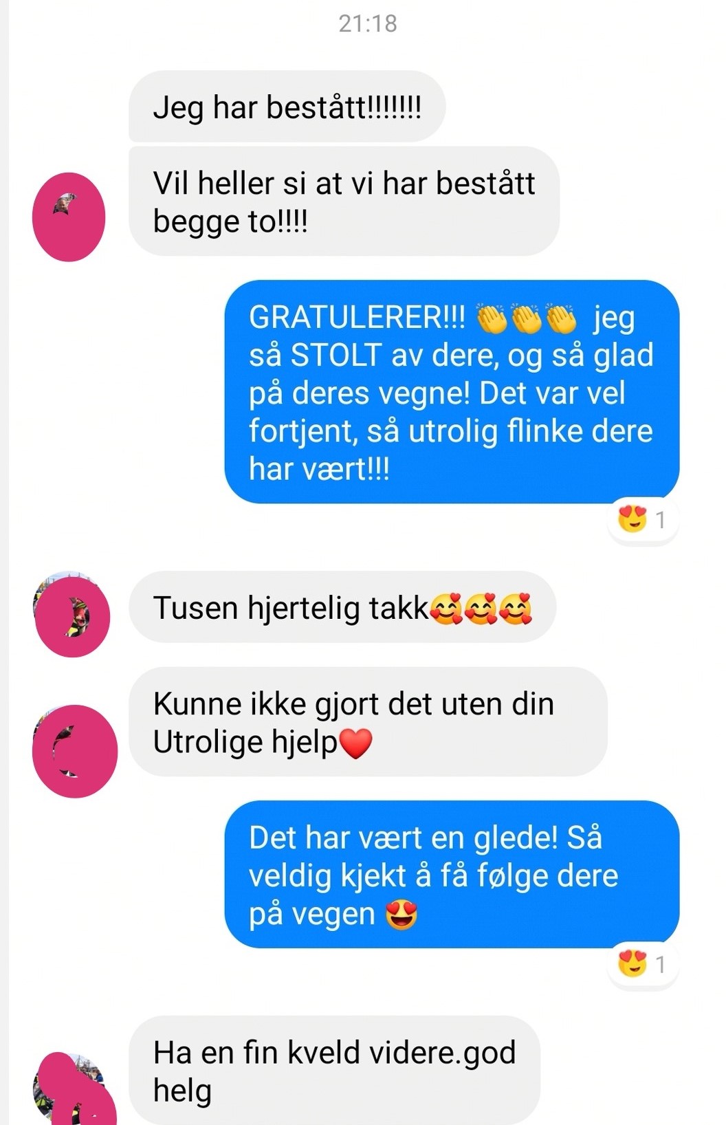 Rett etter nyttår tikket det inn to meldinger på telefonen min fra to av mine studenter fra høsten 2019. Studentene gikk opp til eksamen, og har gått hele juleferien og ventet på resultatet. Jeg ble så utrolig glad og stolt når jeg fikk vite at de klarte det begge to!