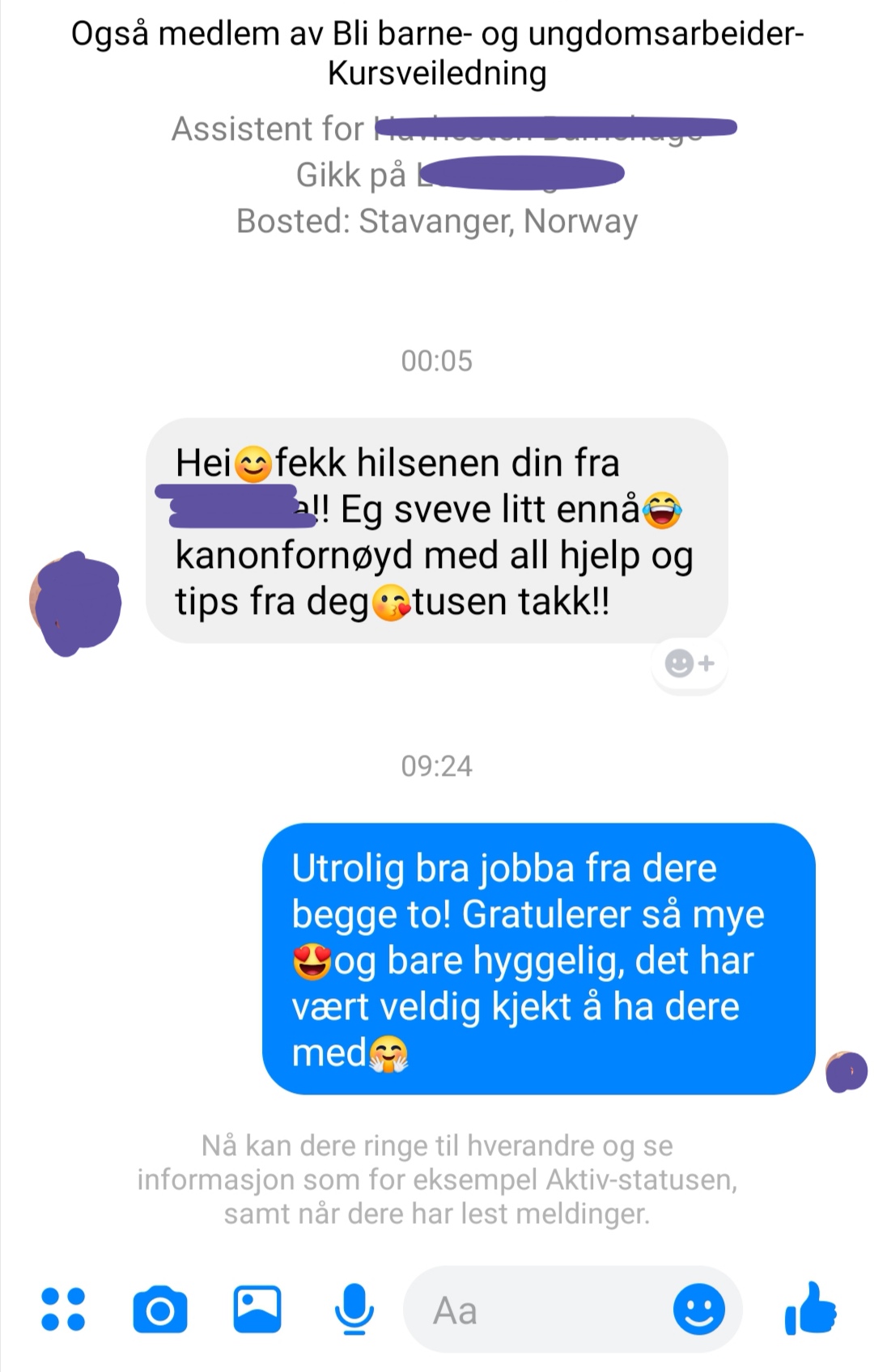 Dette kurset vil jeg anbefale på det varmeste!! Får rask tilbakemelding hvis jeg lurer på noe og god veiledning når det trengs. Jeg er kjempefornøyd med at jeg kan ta kurset i mitt eget tempo. Kurset er innholdsrikt og engasjerende, og pensum blir lagt fram på ein måte som er lett å forstå og jeg liker godt refleksjonsoppgavene som følger hver leksjon.